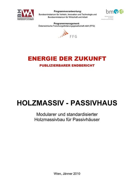 Für ressourcenorientiertes nachhaltiges Bauen ist die Passivhaustechnologie unabdingbar und notwendig. Die Vielzahl an unterschiedlichen Systemen ermöglicht bis dato aber keine Standardisierung und gesicherte Qualität der Planung und Ausführung. Daraus resultieren geringe Marktdurchdringung und hohes Preisniveau. Die Holzmassivbauweise ermöglicht nicht nur eine ökologische Bauweise (natürlicher Baustoff, Beitrag zum Klimaschutz durch C02 Bindung), sondern auch eine klare Trennung der tragenden Strukturen von den nicht tragenden Dämmschichten und vorgesetzten Installationsebenen. Dadurch kann ein modulares Baukastensystem festgelegt oder definiert werden, welches sich als Standard für Holzmassiv-Passivhäuser am Markt etablieren kann.