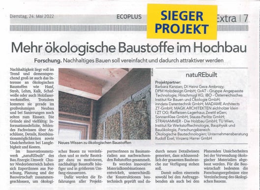 Am 24. Mai fand die Preisverleihung des diesjährigen "Clusterland Award" statt. Unter den 12 nominierten Kooperationsprojekten und 138 innovativen Partnerunternehmen ging das Innovationsnetzwerk natuREbuilt als Sieger hervor!